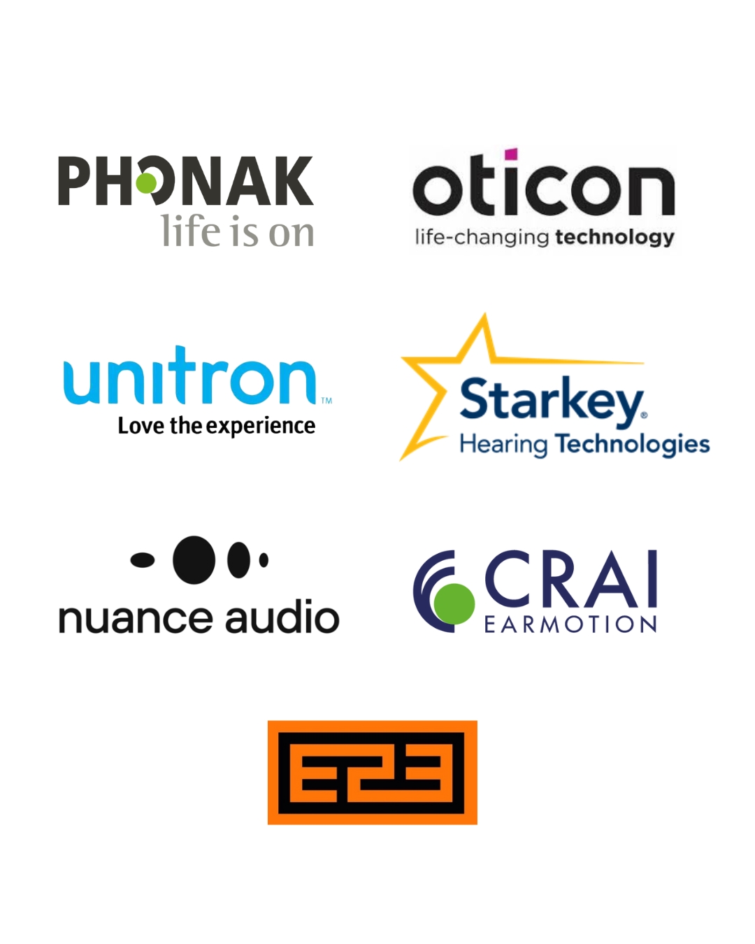 Collaboriamo con i migliori marchi di apparecchi acustici del settore, come Phonak, Oticon, Unitron e Starkey, per garantire ai nostri pazienti soluzioni di alta qualità.